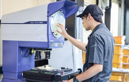 自動車部品の製造ノウハウを活かし、一貫生産を行うことで良品率99%を保つことができています。 -