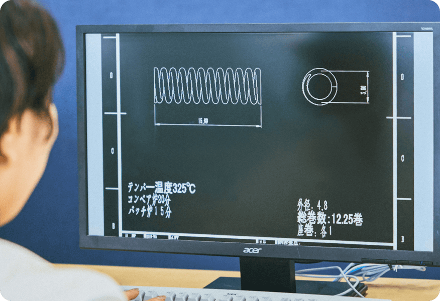 ばねや金属加工部品の試作1個から対応可能です。試作であっても量産時と同じ加工方法、同じ機械を用いるため、量産への移行がスムーズです。図面がある場合にも念入りに確認し、必要に応じて改善策をご提案します。量産製造は月産、数十万個まで。納期や設計仕様変更の場合にも柔軟かつ迅速に対応します。