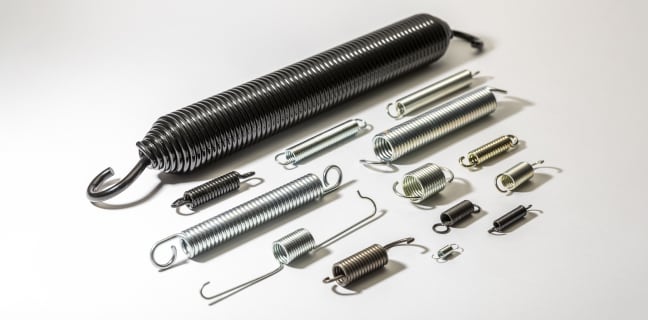 引きばねは押しばねとは違い、引っ張ると元に戻ろうとする力を利用したばねです。引っ張るためのフックが両端に付いているのが特徴です。