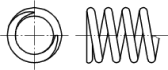 押しばねを固定する手段がない場合、ねじで取り付けができる形状が便利です。徐々に小さくなるように巻きつけたもので、ねじに取り付けることが可能になります。 |