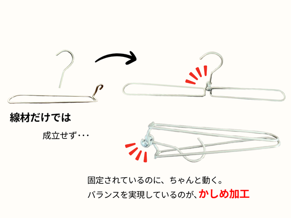 加えて線材加工の特長である「形状自由度の高さ」も、ハンガーという製品との相性が良く、設計の幅を広げられる点が決め手となりました。