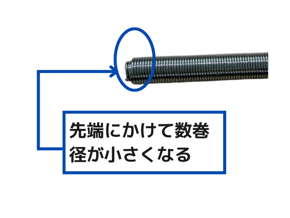 先端にかけて線径が異なる構造を採用することで、反発力を細かく調整できるのが特長です。